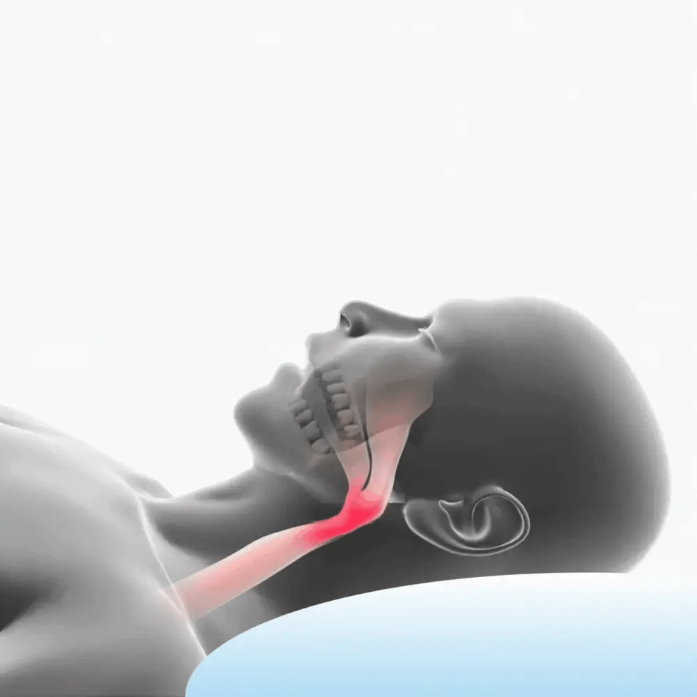 The main cause of snoring is jaw relaxation, which drops backward during sleep.This pulls the tongue and soft tissues, blocking the airways.When air forces its way through this narrowed passage, it creates the vibration we know as snoring.Most “anti-snoring solutions” fail because they may let more air in, but don’t address the blocked airflow itself.